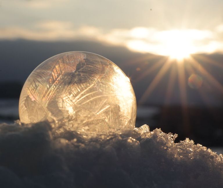 Du kannst selbst versuchen, Seifenblasen an kalten Tagen zu machen und beobachten, wie sie in der Luft schweben und dann zu kleinen Eiskristallen werden.
