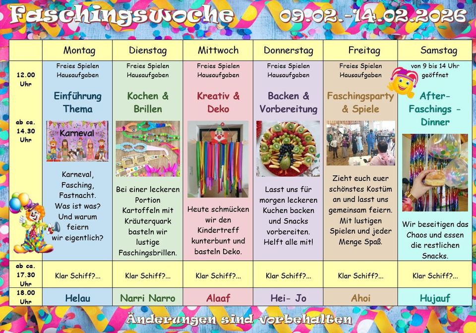 Hier könnt ihr euch ansehen, was in dieser Woche bei uns im Kindertreff geplant ist.